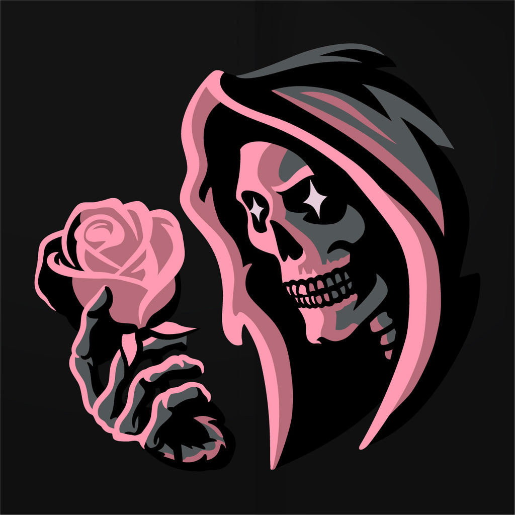 In the quiet grip of darkness, even the Reaper pauses to marvel at beauty. The glowing rose raised to his face reminds us that light can bloom in the unlikeliest places, and that even in endings, there’s wonder to be found. This design is a tribute to resilience—the idea that hope and beauty can shine brightest when surrounded by shadows.