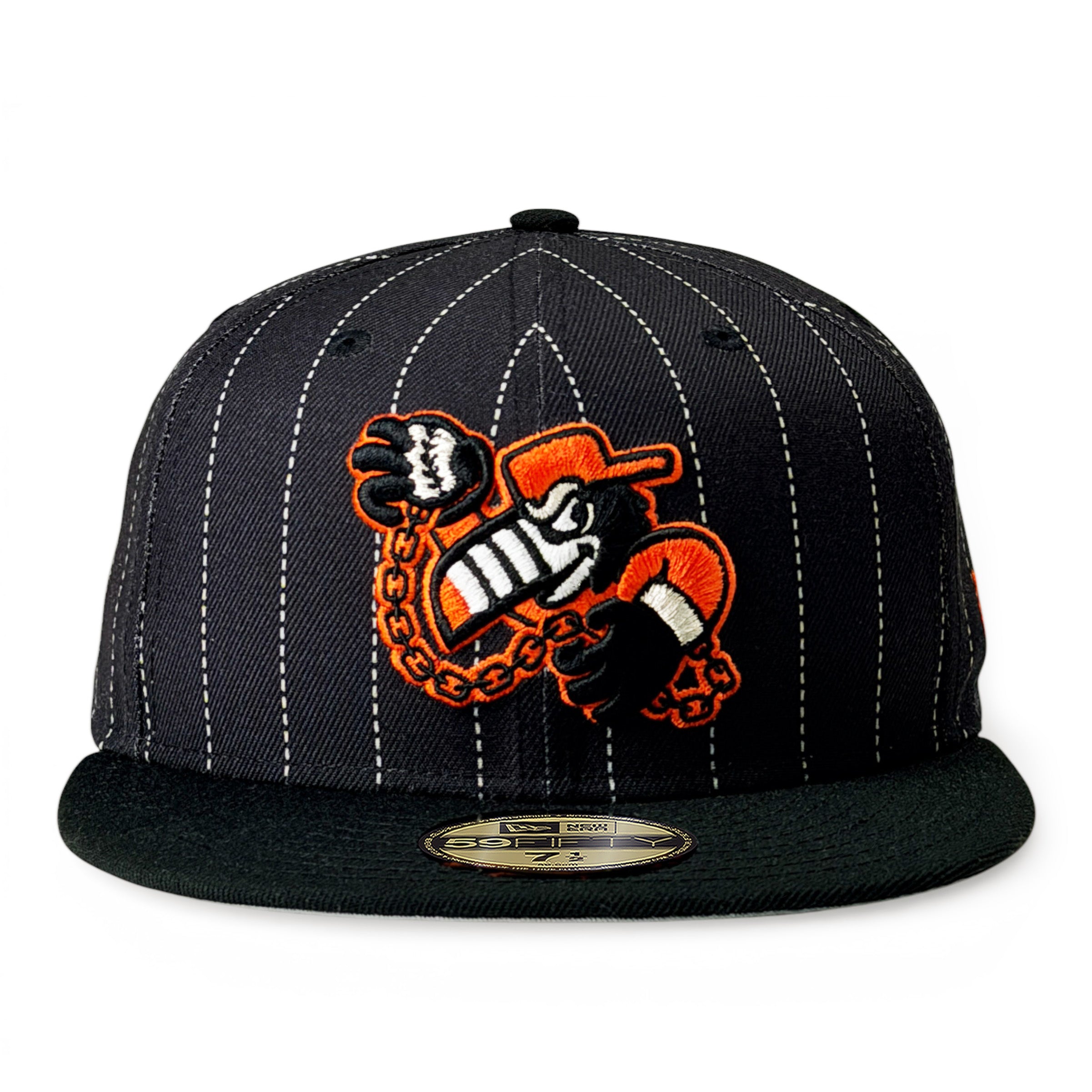 Crown: Black w/ White Pinstripes / Visor: Black / Button: Black / Undervisor: Gray